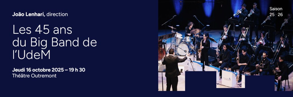 Cette année, le Big Band de l’Université de Montréal fête un jalon important: ses 45 ans d’existence. Pour marquer cette occasion mémorable, le groupe jouera sur la scène du Théâtre Outremont, offrant une soirée exceptionnelle aux aficionados du jazz le 16 Octobre. Sous la direction du talentueux João Lenhari, cette célébration mettra en lumière des solistes invités de renom, tous professeurs au sein du département de jazz de la Faculté de musique.